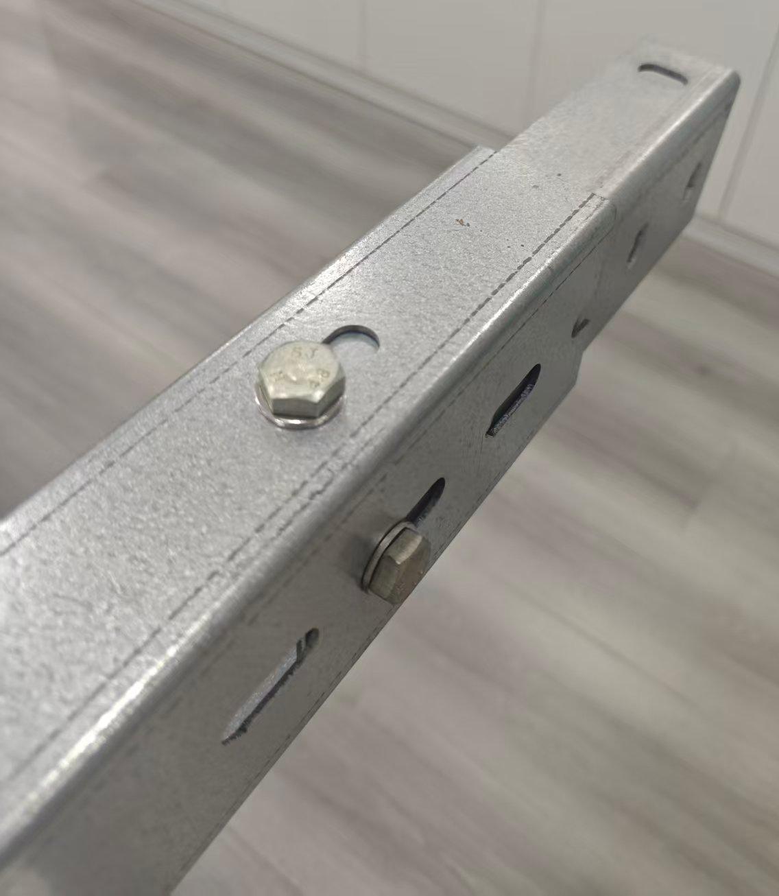 Az acél L típusú szolársínek két oldala van: az egyik öt vagy több lyukkal, a másik két fix furattal. Ez a furat-konfiguráció lehetővé teszi a hatékonyabb rögzítést a vágányok között, miközben biztosítja a sín általános stabilitását. L-alakja lehetővé teszi a zökkenőmentes integrációt a pályán túlzott bonyolultság nélkül. Összességében síncsatlakozóként nélkülözhetetlen szerepet tölt be a teljes vaskonzol rendszerben.